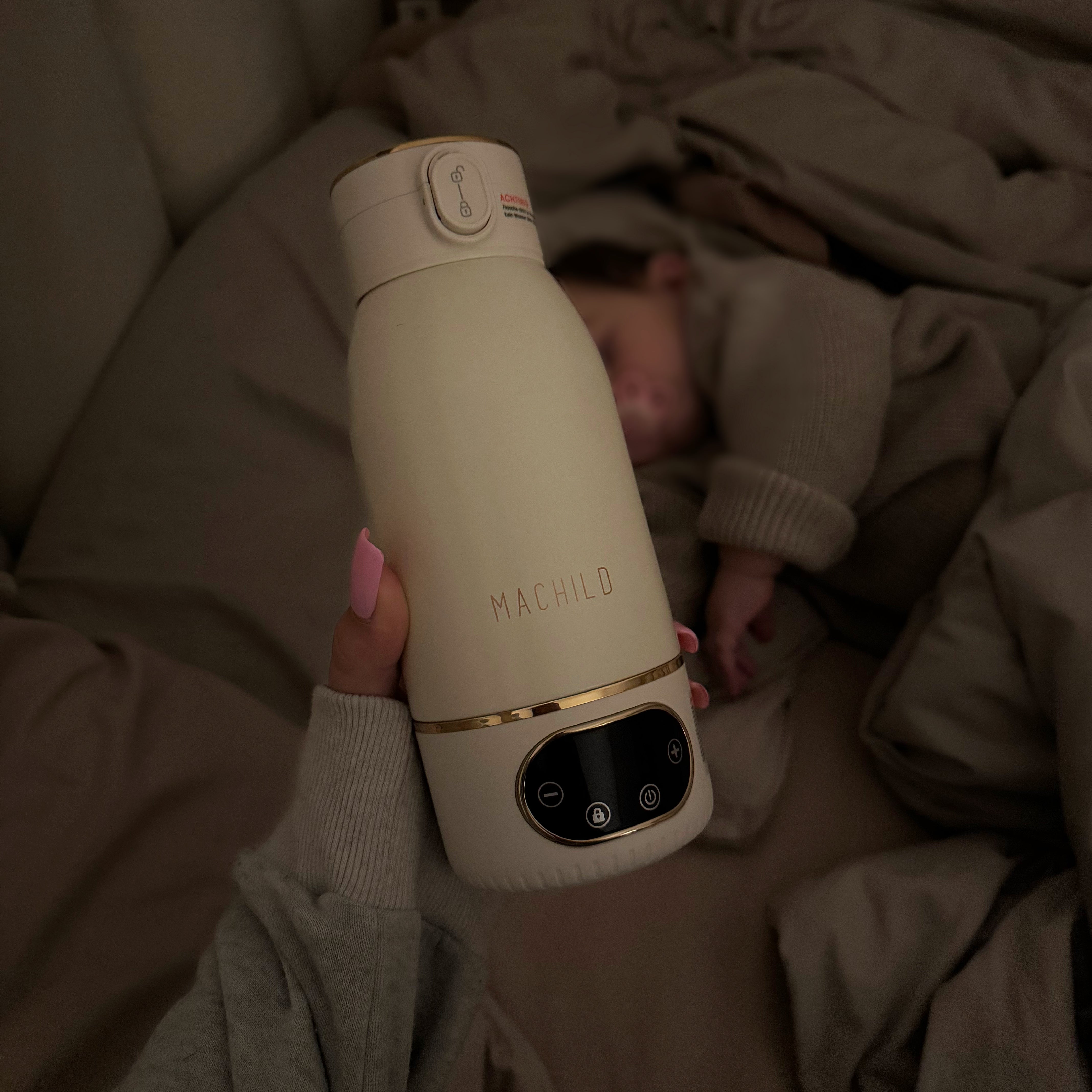 Nach einer Operation konnte ich leider nicht genug Muttermilch produzieren und war auf Fläschchennahrung angewiesen. Lange Zeit traute ich mich nicht, unterwegs zu sein, weil ich unsicher war, wie ich die perfekte Temperatur für das Fläschchen erreiche. Teilweise verließ ich das Haus mit drei Thermosflaschen, Thermometer und allem, was dazu gehört. Diese Erfahrung hat mich dazu inspiriert, ein Produkt zu entwickeln, das Eltern hilft, den Alltag zu erleichtern und das Füttern unterwegs stressfrei zu gestalten.